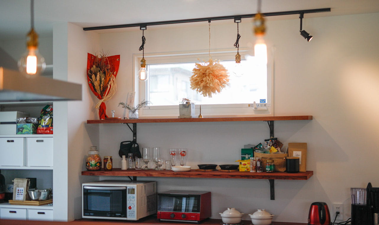 アップルティーという赤茶色の塗料で統一したところです。前例がなかったみたいなのですが、やってみたら想像以上に素敵な仕上がりで嬉しかったです。あと、私は身長が低いのでキッチンの吊り棚は無くしてもらって、代わりに窓の位置を日がたくさん入るように高くしてもらいました。そうした融通が効くのもありがたかったです。